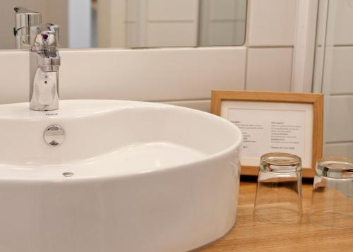 Eget badrum, sittmöbler och skrivbord är standard i alla rum.